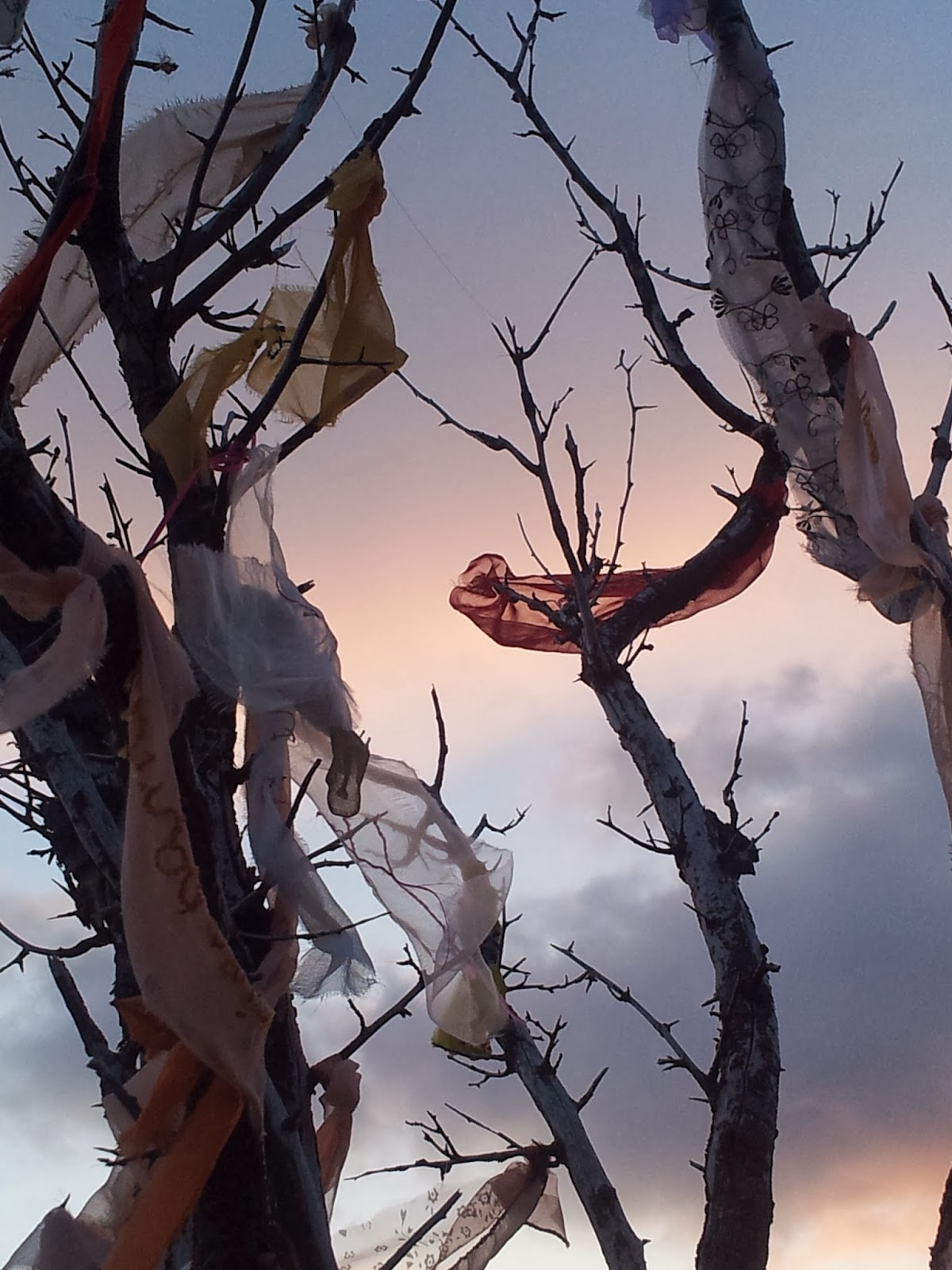 on the last day of my residency i visited the tree at dawn and hung the last cloutie.